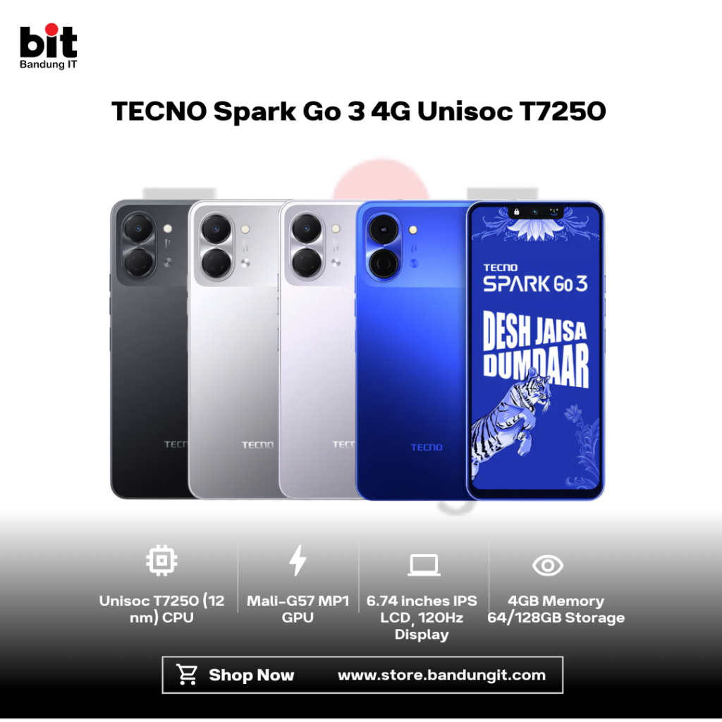 TECNO Spark Go 3 4G Unisoc T7250 6.74 Inch IPS LCD 120Hz Dot Notch Screen 13MP Main Camera Garansi Resmi Indonesia