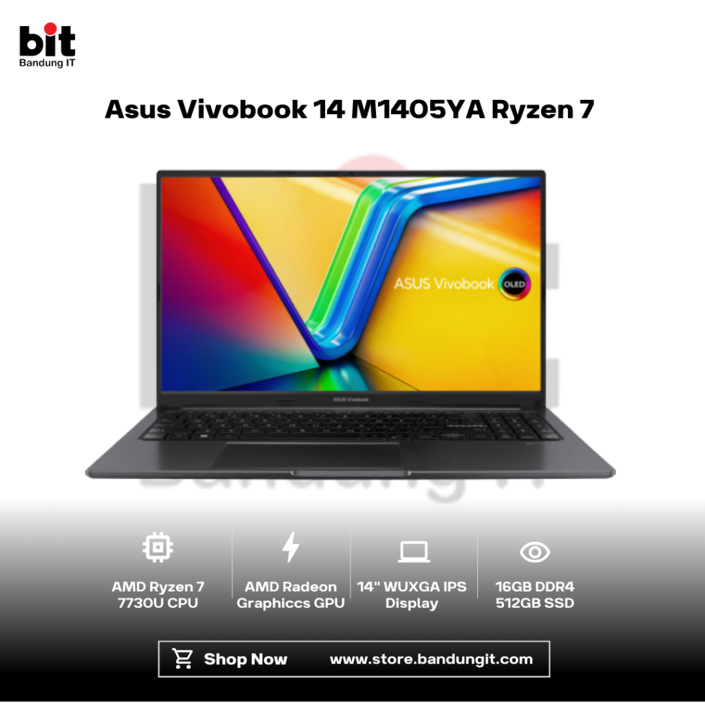 ASUS Vivobook 14 M1405YA Ryzen 5 7430U 16GB 512GB 14 Inch WUXGA VIPS 45% NTSC