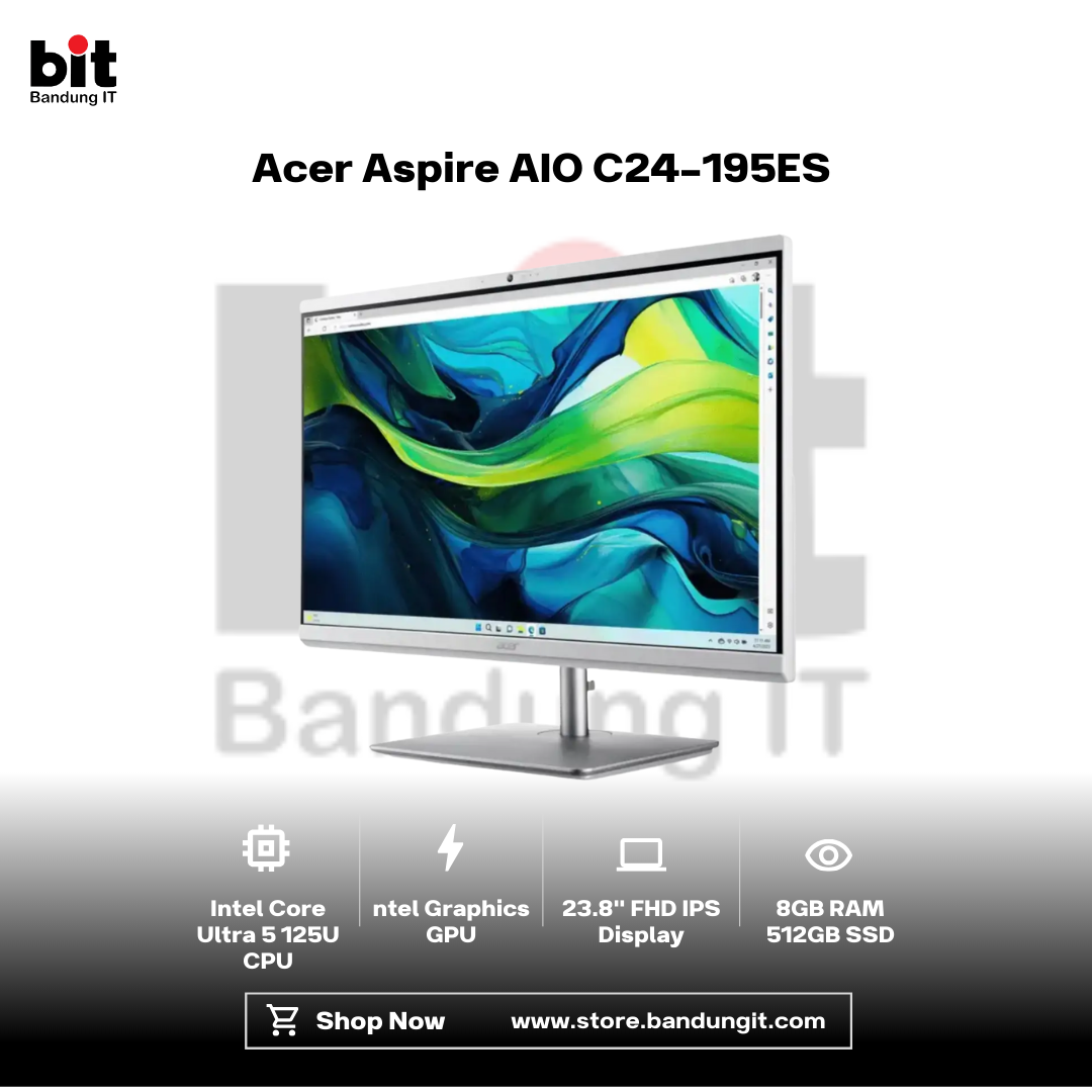Acer Aspire AIO C24-195ES hadir sebagai solusi all-in-one yang ringkas, modern, dan efisien untuk kebutuhan kerja, belajar, dan hiburan sehari-hari. Dibekali layar 23.8 inci FHD IPS yang tajam dan nyaman di mata, AIO ini memberikan visual jernih dengan sudut pandang luas untuk produktivitas maupun streaming. Ditenagai prosesor Intel Core Ultra 5 125U dengan Intel AI Boost NPU, dipadukan 8GB DDR5 dan 512GB SSD PCIe 4.0, perangkat ini menawarkan kinerja responsif, multitasking lancar, serta penyimpanan cepat dan andal. Sistem sudah dilengkapi Windows 11 Home dan Microsoft Office Home & Student, sehingga siap digunakan langsung tanpa instalasi tambahan. Desain putih minimalis membuatnya cocok untuk berbagai ruang kerja modern. Dukungan port lengkap seperti USB-C, USB 3.2, HDMI, dan RJ45 memastikan fleksibilitas konektivitas untuk kebutuhan profesional maupun personal. Dengan garansi resmi 1 tahun Acer Indonesia, Aspire AIO C24-195ES menjadi pilihan praktis, stylish, dan powerful untuk komputasi harian dalam satu perangkat yang hemat ruang.