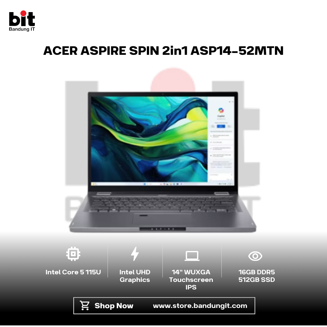Demikian informasi spesifikasi dan harga dari Laptop Acer Aspire Spin 2in1 ASP14-52MTN, Untuk pemesanan bisa hubungi 022-3209-4466