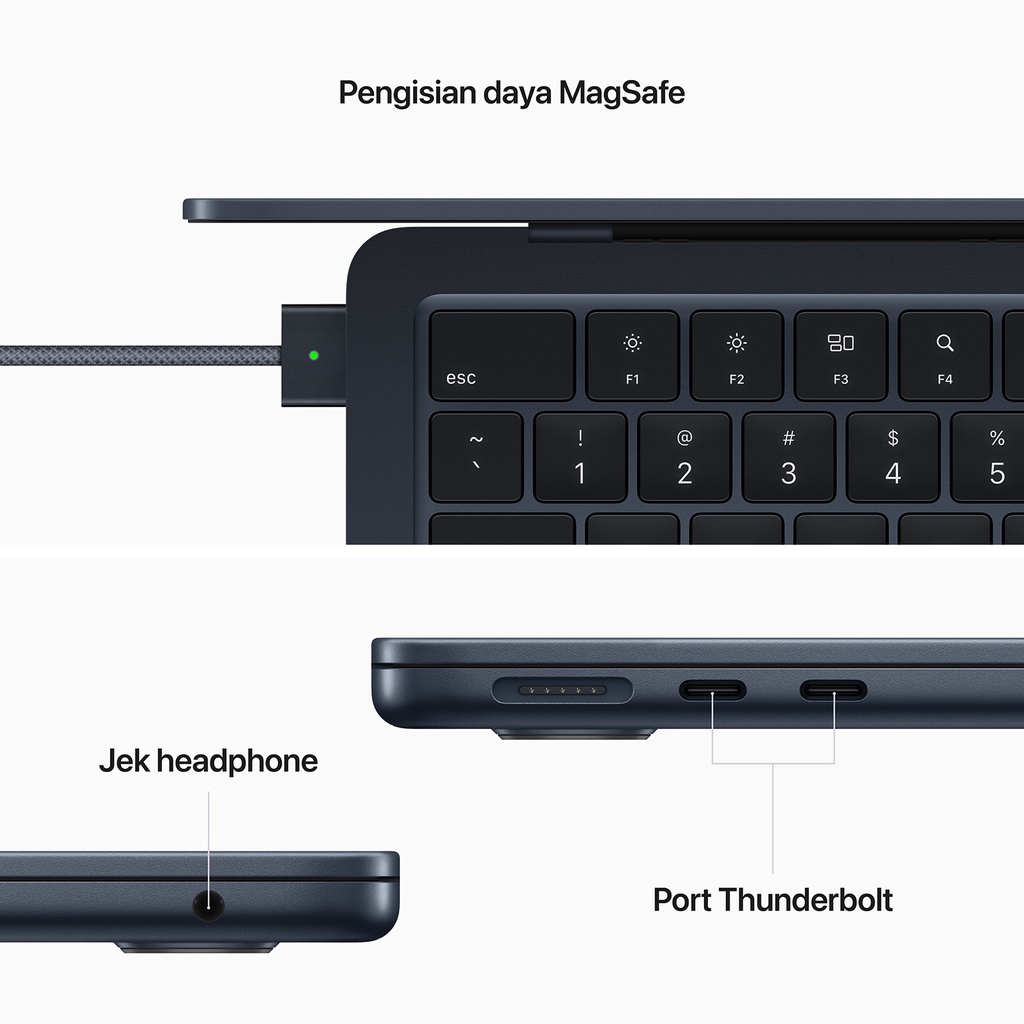 Apple MacBook Air 13 M2 menghadirkan keseimbangan sempurna antara performa tinggi, desain ultra-tipis, dan efisiensi daya untuk gaya kerja modern. Ditenagai chip Apple M2 dengan 8-core CPU dan 8-core GPU, laptop ini mampu menangani multitasking, editing kreatif ringan, hingga produktivitas profesional dengan lancar dan senyap tanpa kipas. Layar 13,6” Liquid Retina memberikan visual tajam, warna akurat, dan kecerahan optimal untuk bekerja maupun menikmati hiburan. Dengan bobot hanya 1,24 kg, baterai yang tahan lama, serta konektivitas modern melalui USB-C Thunderbolt/USB4 dan MagSafe 3, MacBook Air M2 menjadi pilihan ideal bagi profesional, mahasiswa, dan kreator yang menginginkan laptop premium, ringan, dan andal untuk mobilitas tinggi.
