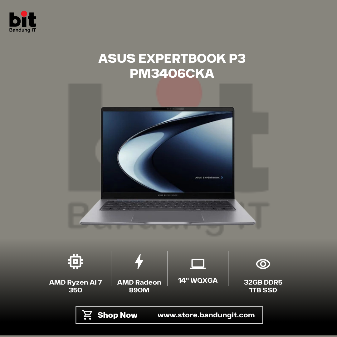 ASUS ExpertBook P3 PM3406CKA menghadirkan performa kelas profesional dengan AMD Ryzen AI 7 350 dan RAM DDR5 32GB, didukung SSD 1TB PCIe 4.0 untuk multitasking dan penyimpanan cepat. Neural Processor AMD Ryzen AI 40+ TOPs membuat pekerjaan kreatif, analisis data, hingga AI-assisted task berjalan lebih efisien.