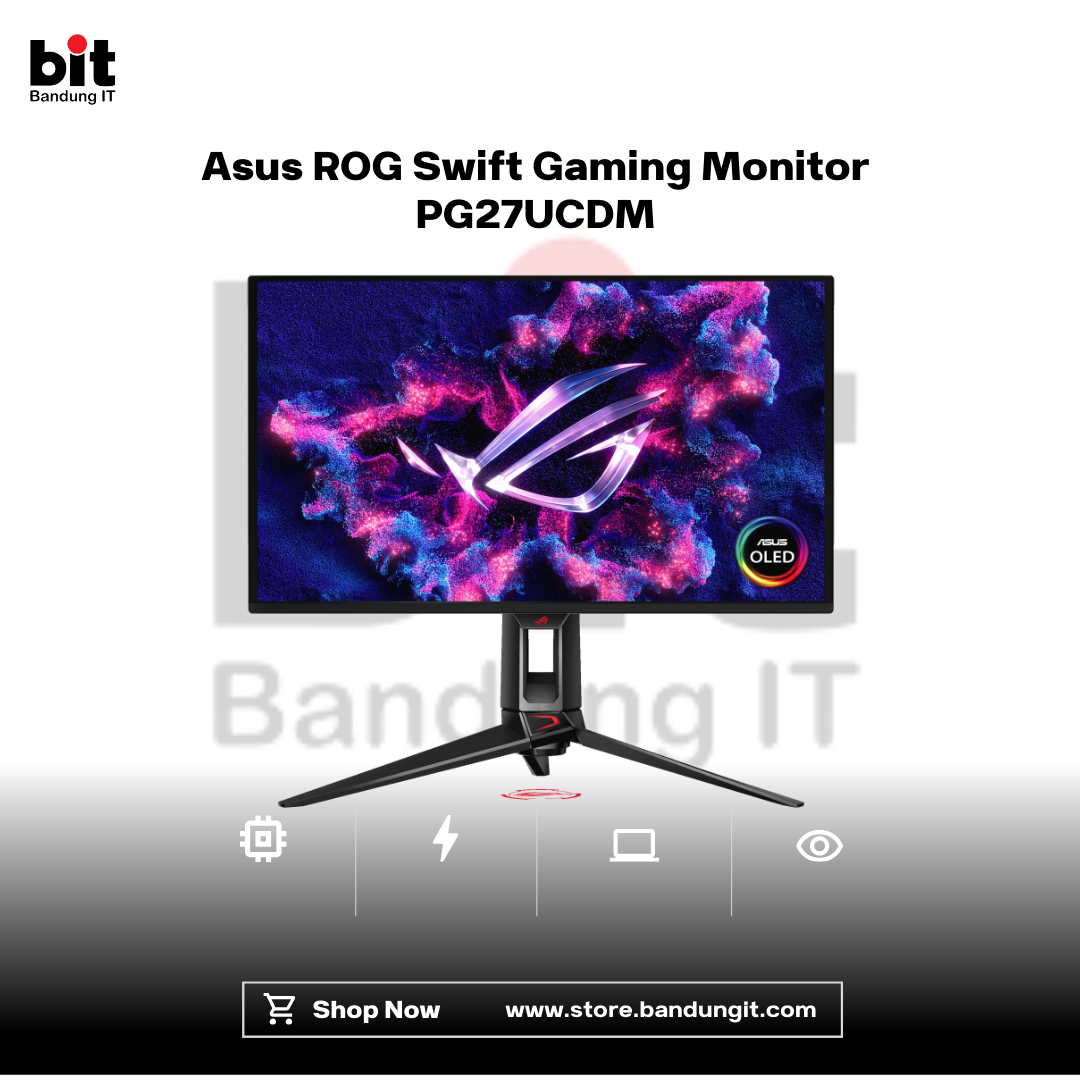 Dilengkapi fitur premium seperti ELMB, Shadow Boost, GamePlus, DisplayWidget Center, Aspect Control, serta KVM Switch, monitor ini menawarkan kontrol dan fleksibilitas maksimal untuk multi-perangkat dalam satu setup. Fitur ASUS OLED Care dan sensor Neo Proximity membantu menjaga ketahanan panel OLED dalam penggunaan jangka panjang. Dari sisi konektivitas, tersedia DisplayPort 2.1, HDMI 2.1, dan USB-C dengan power delivery 90W, sehingga mampu mengisi daya laptop sekaligus menampilkan visual berkualitas tinggi. Dengan desain ergonomis (tilt, swivel, pivot, height adjustment), dukungan Aura Sync, serta sertifikasi TÜV Flicker-free, Low Blue Light, dan VESA DisplayHDR 400 True Black, ROG Swift PG27UCDM adalah pilihan terbaik bagi gamer dan profesional yang menginginkan performa tertinggi, visual spektakuler, dan pengalaman premium tanpa kompromi.