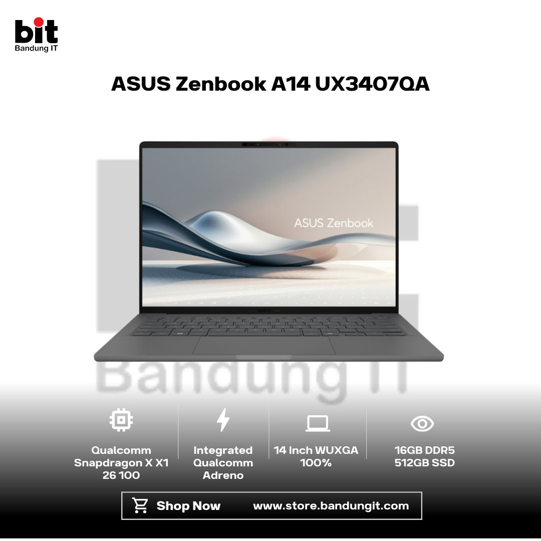 ASUS Zenbook A14 UX3407QA hadir sebagai laptop ultra-ringan modern yang dirancang untuk mobilitas tinggi dan produktivitas harian. Dengan bobot hanya 899 gram dan bodi tipis elegan, laptop ini sangat nyaman dibawa bekerja, kuliah, maupun bepergian. Ditenagai Snapdragon X Series dengan NPU hingga 45 TOPS, Zenbook A14 siap mendukung fitur AI generasi baru di Windows 11. Layar 14 inci WUXGA IPS 100% sRGB menampilkan visual tajam dan akurat, ideal untuk kerja kreatif dan konsumsi konten. Didukung RAM 16GB, SSD 512GB, Wi-Fi 6E, serta bonus Office dan sleeve eksklusif, Zenbook A14 adalah pilihan tepat bagi pengguna yang mengutamakan desain ringan, efisiensi daya, dan pengalaman komputasi masa kini.