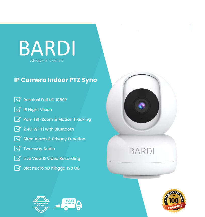 BARDI Smart IP Camera Indoor Syno merupakan kamera pintar yang dapat menyalurkan video berikut suara kepada smartphone dan suara dari smartphone.