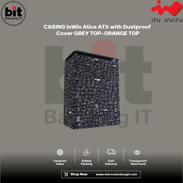 Deskripsi CASING InWin Alice ATX with Dustproof Cover GREY TOP-ORANGE TOP