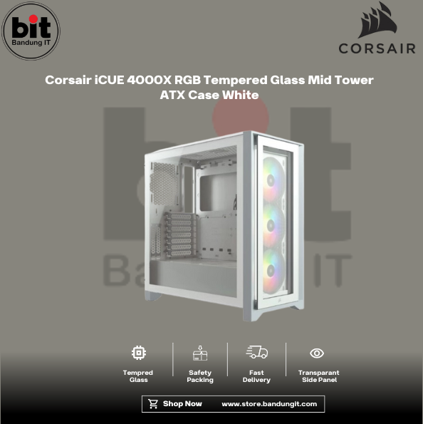 Corsair iCUE 4000X RGB Tempered Glass Mid Tower ATX Case White