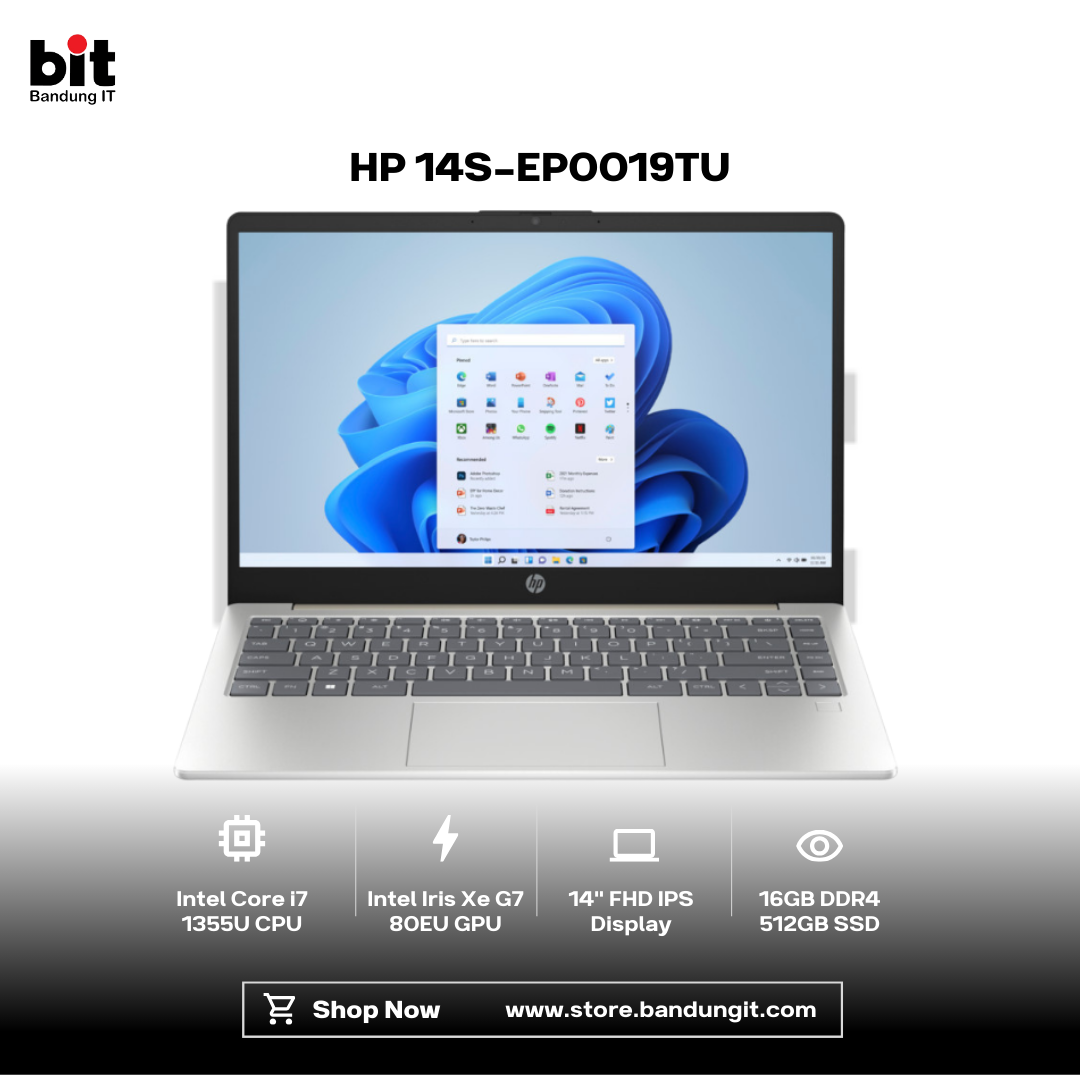 HP 14S-EP0019TU / 14S-EP0018TU adalah laptop 14 inci yang mengutamakan performa, keandalan, dan portabilitas untuk kebutuhan kerja maupun studi sehari-hari. Ditenagai prosesor Intel Core i7-1355U dengan grafis Intel Iris Xe G7 80EU, laptop ini mampu menangani multitasking, aplikasi produktivitas, hingga desain ringan dengan lancar. Layar 14″ FHD IPS memberikan tampilan yang tajam dan nyaman dipandang, cocok untuk bekerja dalam waktu lama. Dukungan 16GB RAM dual-channel serta 512GB SSD PCIe 4.0 memastikan kinerja responsif dan penyimpanan cepat untuk berbagai kebutuhan file. Dengan bobot hanya 1,40 kg, konektivitas Wi-Fi 6, serta desain yang ramping dalam pilihan warna Natural Silver dan Midnight Blue, HP 14S ini menjadi pilihan ideal bagi pelajar, profesional, dan pengguna mobile yang membutuhkan laptop bertenaga namun tetap praktis dibawa bepergian.