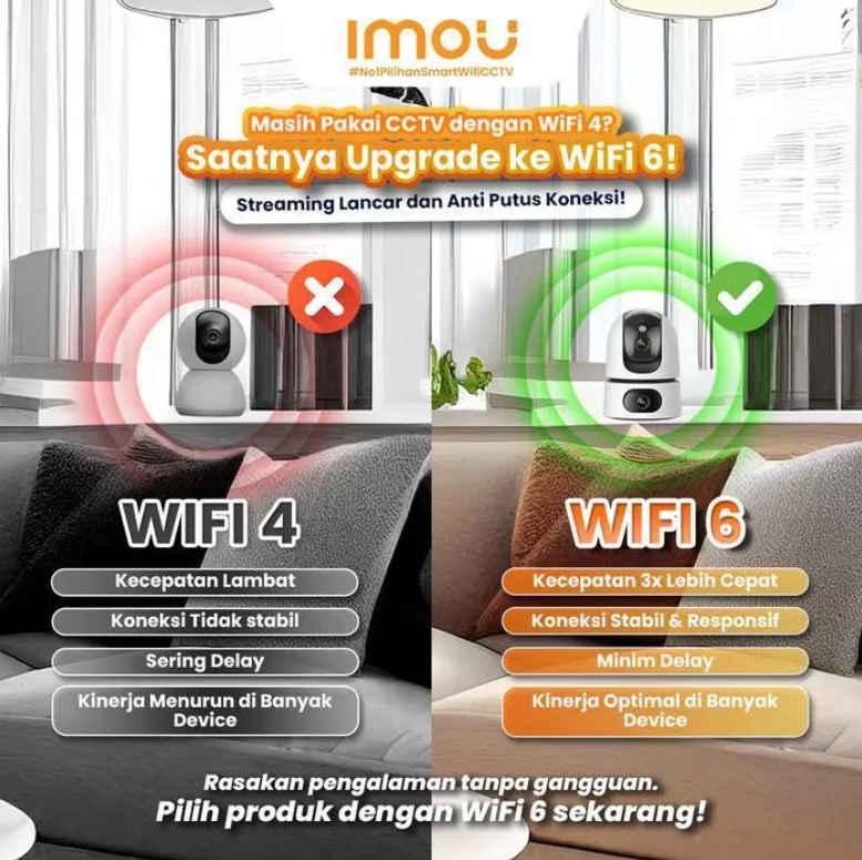 Smart CCTV Indoor Wi-Fi 6 dengan AI Human & Pet Detection, Full Color Night Vision. Kamera ini dilengkapi dengan dua lensa, memungkinkan resolusi 6MP/10MP. Dengan lensa tetap dan panning, kamera ini menawarkan sudut pandang luas.