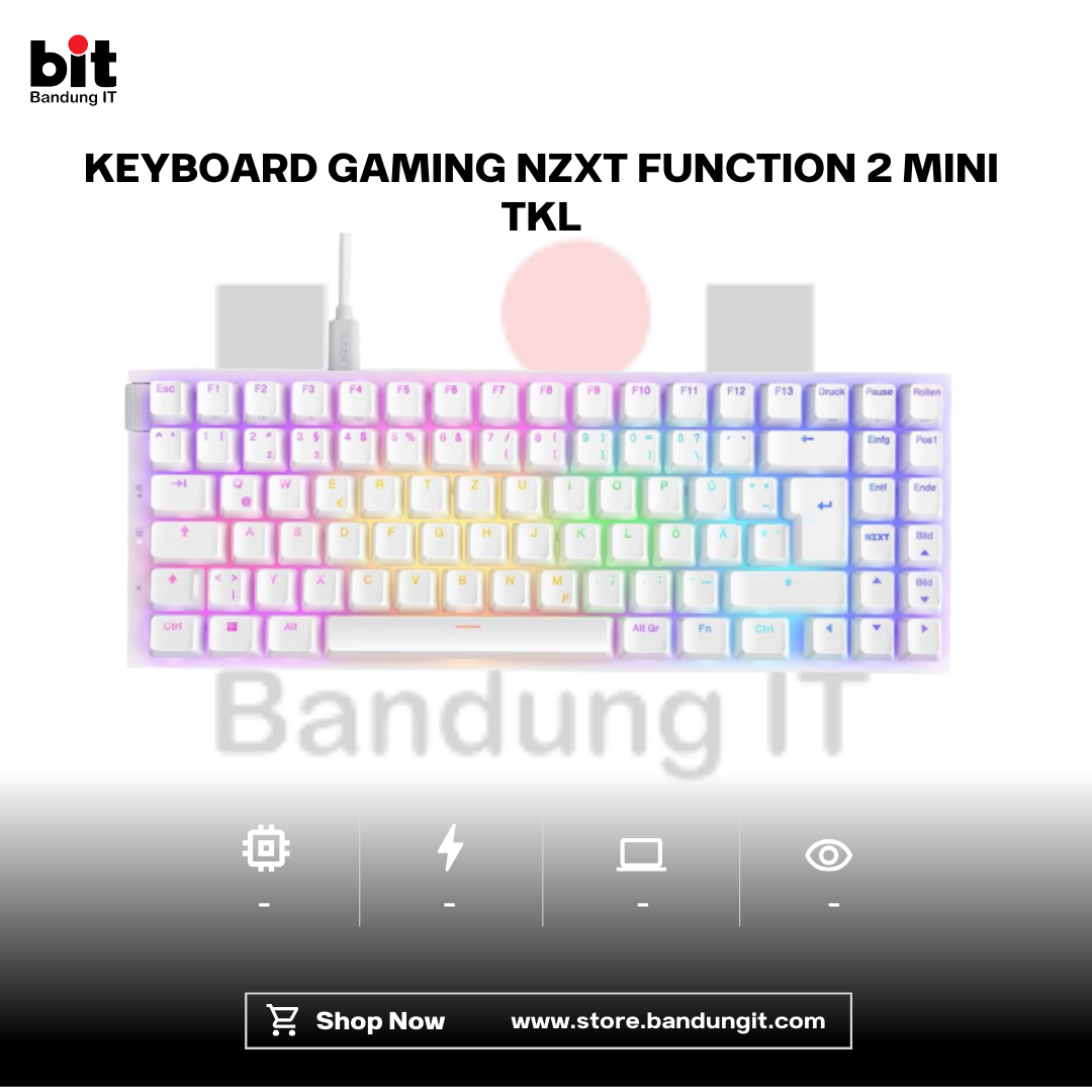 Bagian atasnya menggunakan material 5000 Series Aluminum yang kokoh, dilengkapi keycaps Doubleshot PBT Shine-Through dan pencahayaan Per-Key RGB yang dapat dikustomisasi. Keyboard ini bersifat hot-swappable, menggunakan koneksi kabel braided USB-C to USB-A (2 meter) yang dapat dilepas, serta memiliki onboard memory untuk menyimpan pengaturan. Dengan bobot 718 gram dan desain ergonomis dengan 3 level pengaturan tinggi, NZXT Function 2 Mini TKL menjadi pilihan ideal bagi gamer yang menginginkan keyboard compact, responsif, dan premium dengan garansi resmi 2 tahun.