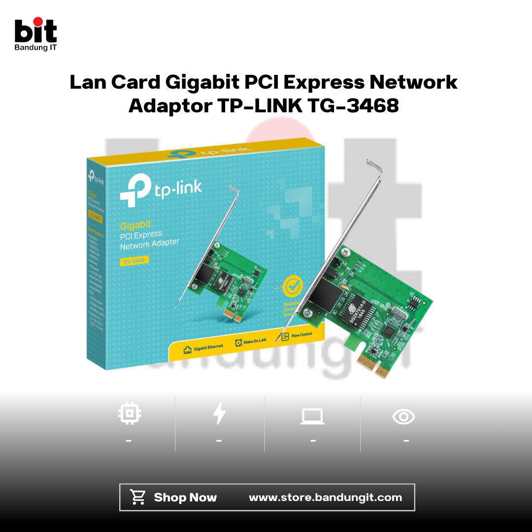 TP-Link TG-3468 10/100/1000Mbps Gigabit PCIe Network Adapter merupakan kartu jaringan berperforma tinggi yang dirancang untuk meningkatkan konektivitas PC ke jaringan Gigabit dengan stabil dan cepat. Menggunakan antarmuka 32-bit PCIe yang ringkas, adapter ini membantu menghemat ruang pada chassis sekaligus memberikan kecepatan hingga 1000Mbps dengan dukungan Auto-Negotiation. Sepenuhnya kompatibel dengan standar IEEE 802.3, 802.3u, dan 802.3ab, serta dilengkapi fitur 802.3x Flow Control untuk menjaga kestabilan transfer data dan Wake-on-LAN yang memudahkan pengelolaan perangkat melalui jaringan. Dengan desain terintegrasi dan harga yang efisien, TG-3468 menjadi solusi ideal untuk upgrade jaringan PC agar lebih cepat, stabil, dan siap mendukung kebutuhan transfer data berkecepatan tinggi.