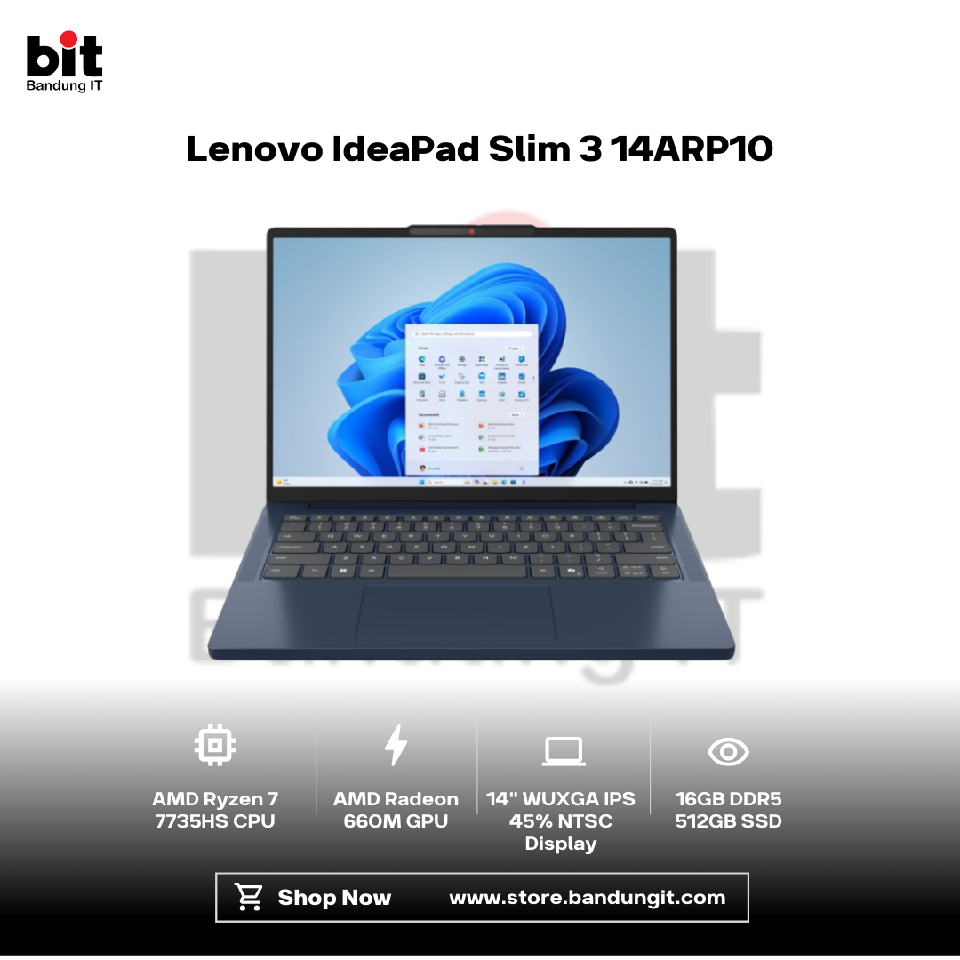 Lenovo IdeaPad Slim 3 14ARP10 dengan AMD Ryzen 7 7735HS dirancang untuk pengguna yang butuh performa tinggi dalam bodi tipis dan ringan. Prosesor bertenaga dipadukan dengan grafis Radeon 680M dan RAM 16GB DDR5 memastikan aktivitas multitasking, pengolahan data, hingga desain grafis ringan berjalan mulus. Layar 14 inci WUXGA IPS memberikan tampilan luas dan nyaman untuk kerja harian, presentasi, maupun hiburan.