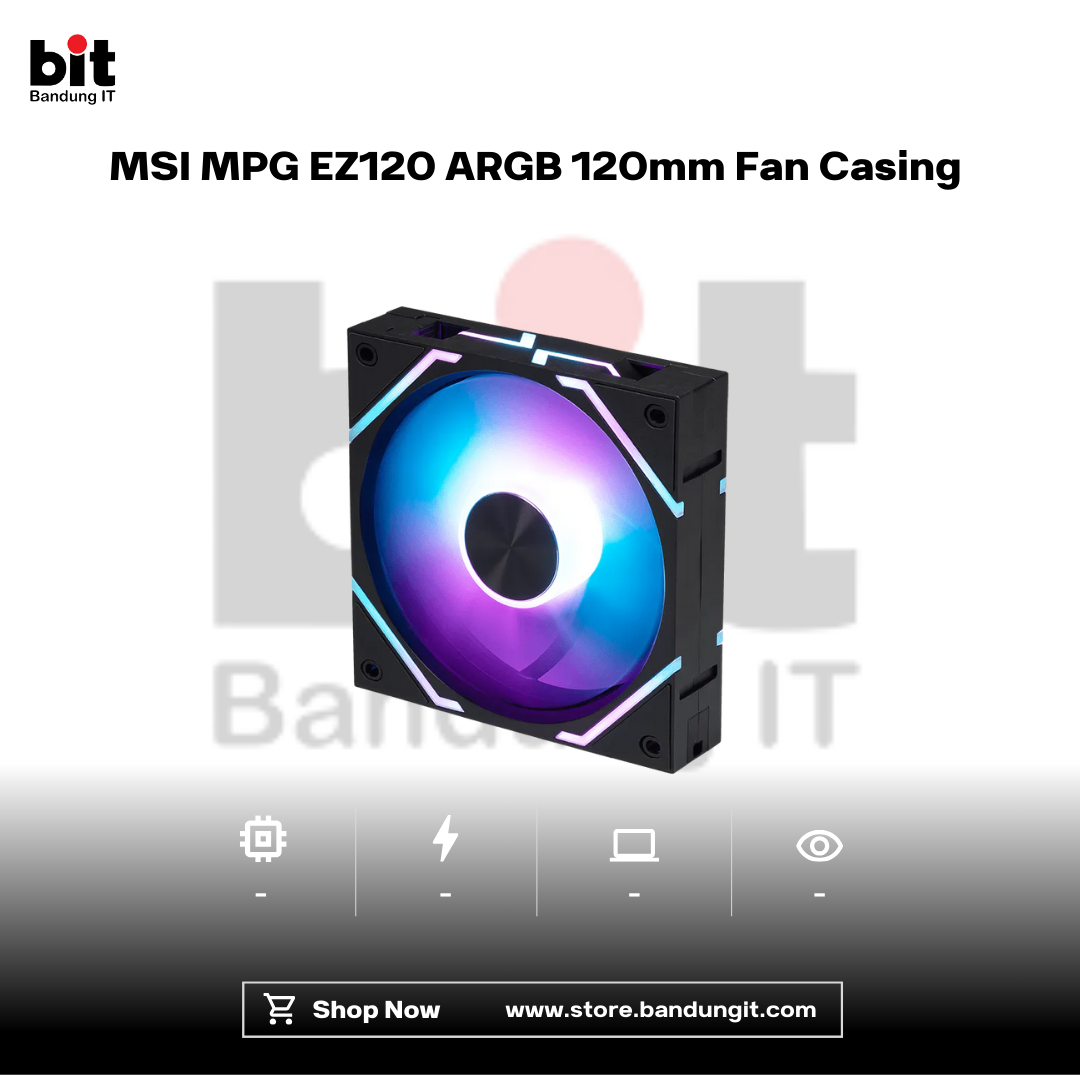 MSI MPG EZ120 ARGB adalah kipas casing 120mm berperforma tinggi yang dirancang untuk aliran udara optimal sekaligus tampilan estetis berkat pencahayaan ARGB. Menggunakan Fluid Dynamic Bearing untuk operasi yang lebih halus dan tahan lama, kipas ini mampu berputar hingga 1900 RPM dengan airflow 73,82 CFM dan tekanan statis 2,56 mmHâ‚‚O, sehingga efektif mendinginkan komponen PC. Dengan tingkat kebisingan maksimal 28,82 dBA, EZ120 tetap senyap saat bekerja, serta mendukung koneksi 4-pin PWM dan 3-pin ARGB untuk kontrol kecepatan dan pencahayaan yang fleksibel.