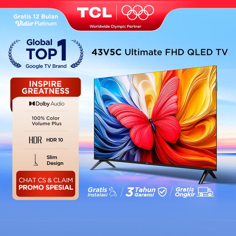TCL 43V5C LED TV 43 Inch Google TV AiPQ Processor Dolby Audio Bezel-less 2025 Baru Garansi Resmi