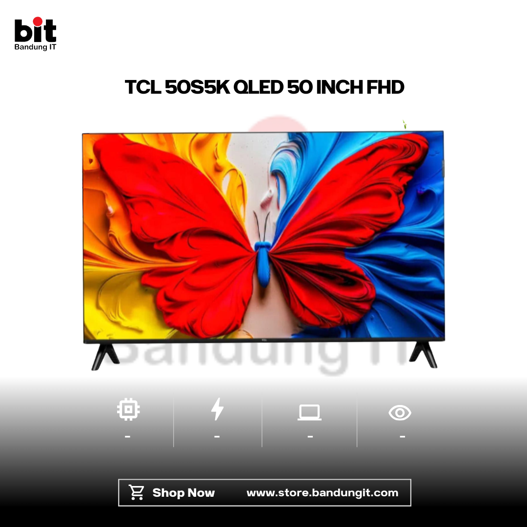 TCL 50S5K merupakan Smart TV 50 inci dengan teknologi FHD QLED yang menghadirkan kualitas gambar lebih cerah, warna lebih kaya, dan kontras lebih tajam berkat panel VA. Dengan resolusi Full HD (1920 × 1080), TV ini mampu menampilkan detail gambar yang jernih dan nyaman untuk berbagai kebutuhan hiburan seperti menonton film, siaran TV, maupun streaming konten favorit.