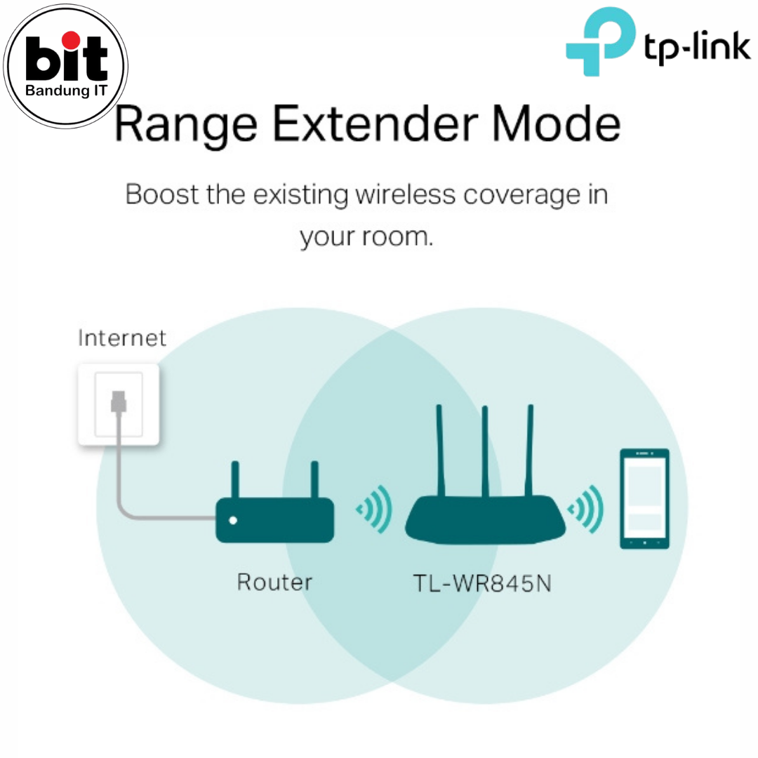 TP-LINK TL-WR845N adalah Wireless N Router yang merupakan kombinasi dari Network Wired dan Wireless untuk menghubungan perangkat Anda dengan Internet, yang terdiri dari 4 Port Switch. Dengan mengadopsi teknologi terkini MIMO (Multi Input Multi Output) secara bersamaan dapat berkerja melalui 3 antena dalam mengirim (Tx) dan meneriama (Rx) untuk mengatasi interferensi dan degradasi ketika melalui jarak yang jauh ataupun ketika melewati penghalang fisik. Hasilnya sangat luar biasa peningkatan performa dari wireless ini. Sekarang ini Anda dapat menikmati berbagai macam aplikasi yang memakan Bandwidth cukup besar seperti HD Video Streaming secara wireless tanpa menggunakan teknologi WiFi 802.11g lagi, dari manapun di dalam seluruh Rumah atau Halaman Anda dengan menggunakan Router ini TP-LINK TL-WR845N.