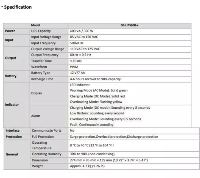 UPS HIKVISION DS-UPS600 Oversea UPS 600 VA / 360 W